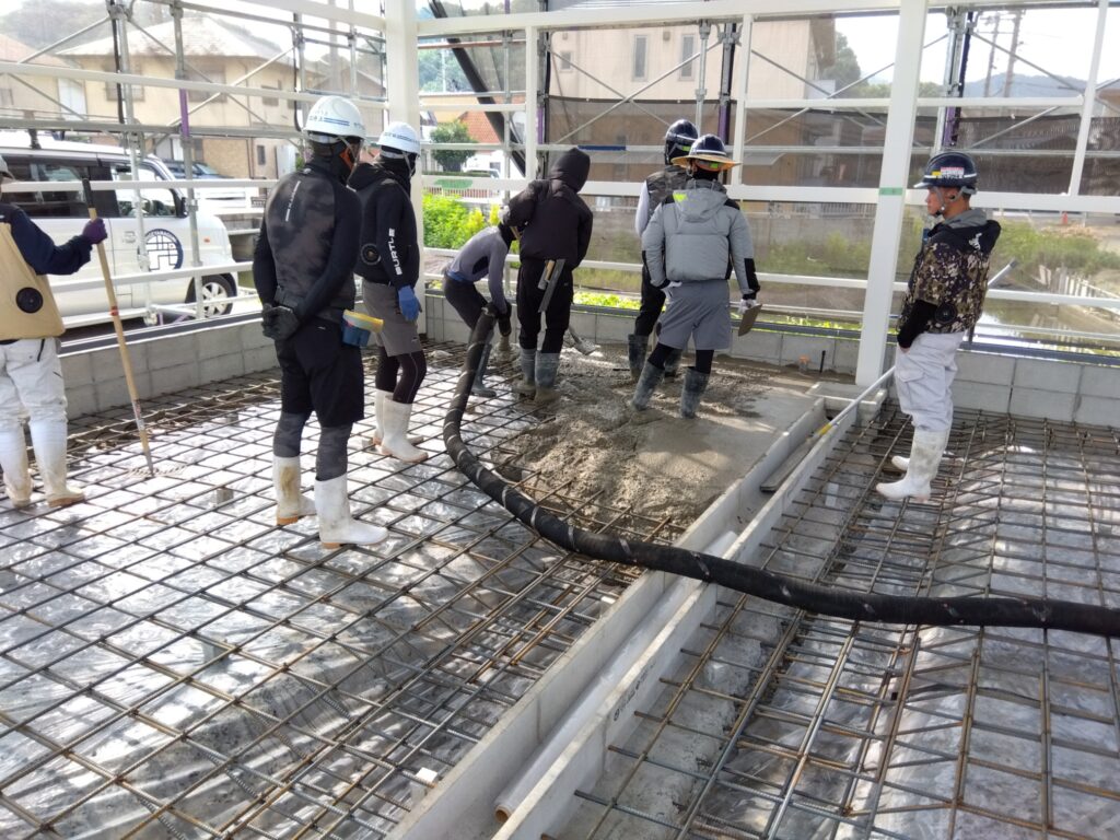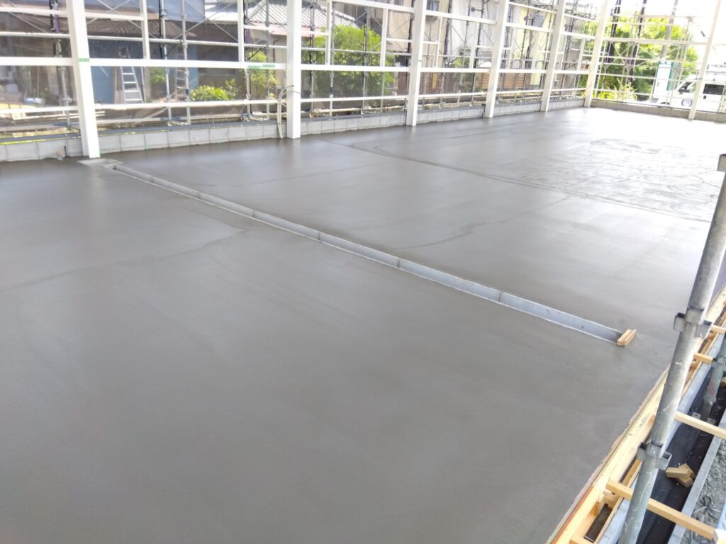 K社様作業場建設現場レポート 土間工事②コンクリート打設・左官作業完了[岡山工場倉庫建築]