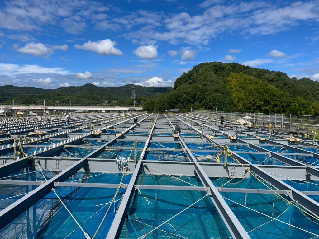 S社さま大型製造工場建設現場レポート デッキ敷き込み工事[岡山工場倉庫建築]