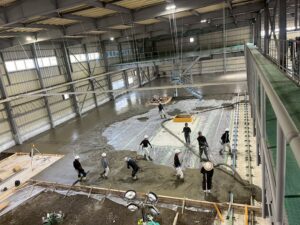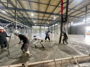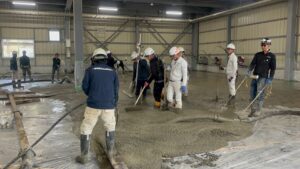 一つひとつの工程で職人の技術が光る現場の様子は、完成後の快適で安全な工場空間を支える重要なステップです。日々形になっていく床面の変化から、建物完成への期待も高まります。