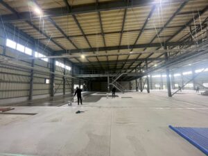 S社さま大型製造工場建設現場レポート 土間工事~左官作業[岡山工場倉庫建築]