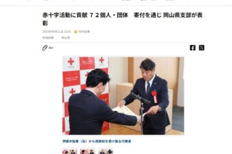 弊社代表取締役の川田が日本赤十字社社長感謝状を受けた団体の代表者として、伊原木知
