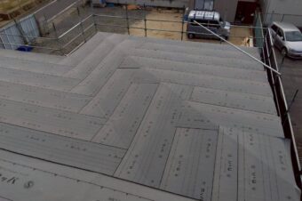 上棟を終えた建物では、屋根葺き工事と内部建具工事が開始されました!