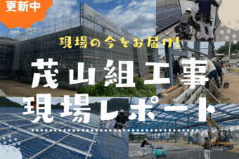 茂山組では、太陽光発電の設置や工場・倉庫の建設、住宅建築、リフォーム・外構工事など、さまざまな現場で日々工事を進めています。