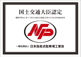 当社の立体駐車場は、国土交通大臣や、指定機関の厳しい審査により認定を受けた認定駐車場です。
